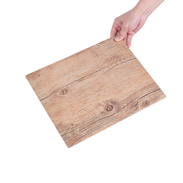 - Faux wood look provides a warm and rustic touch to any food presentation