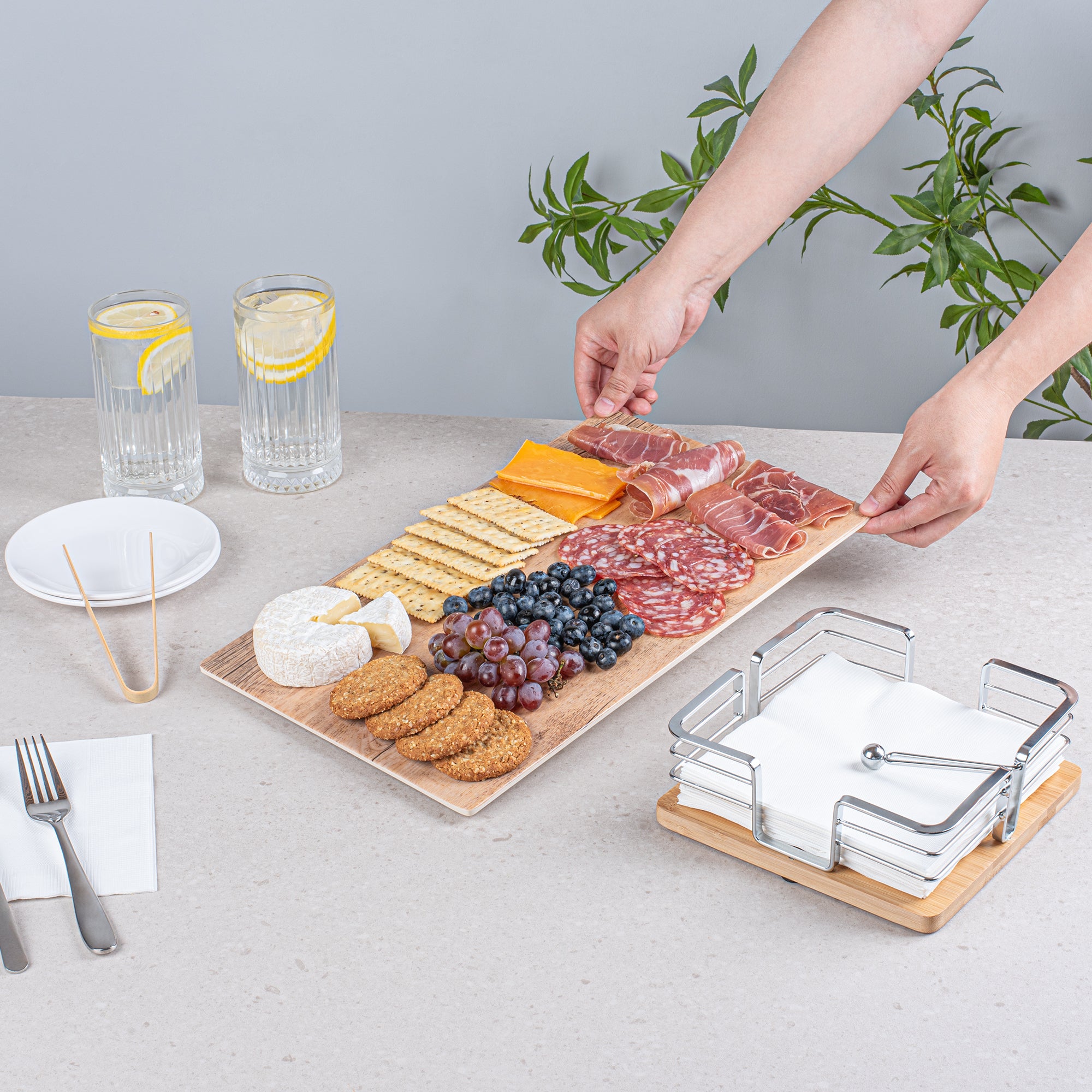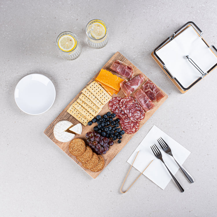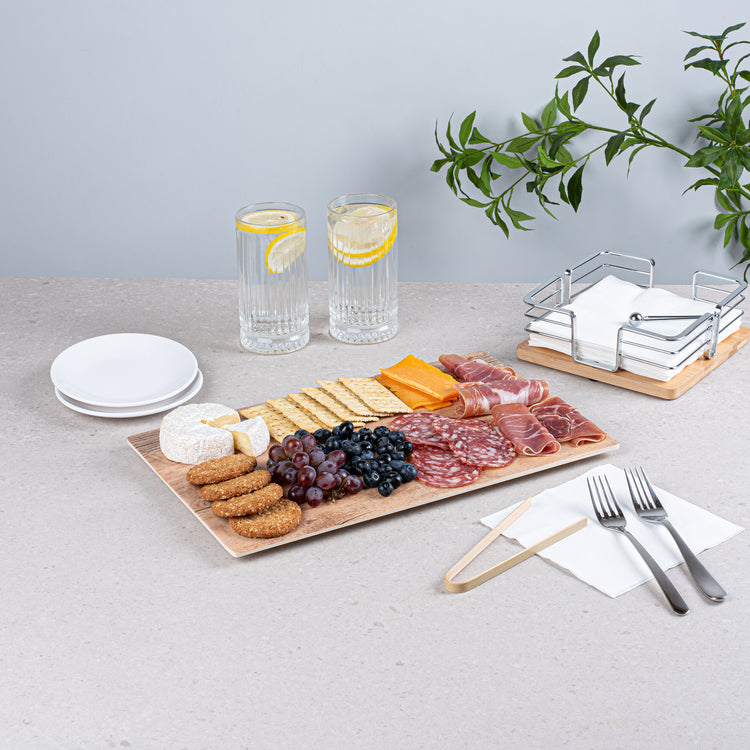 - Faux wood look provides a warm and rustic touch to any food presentation