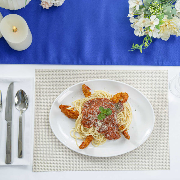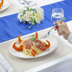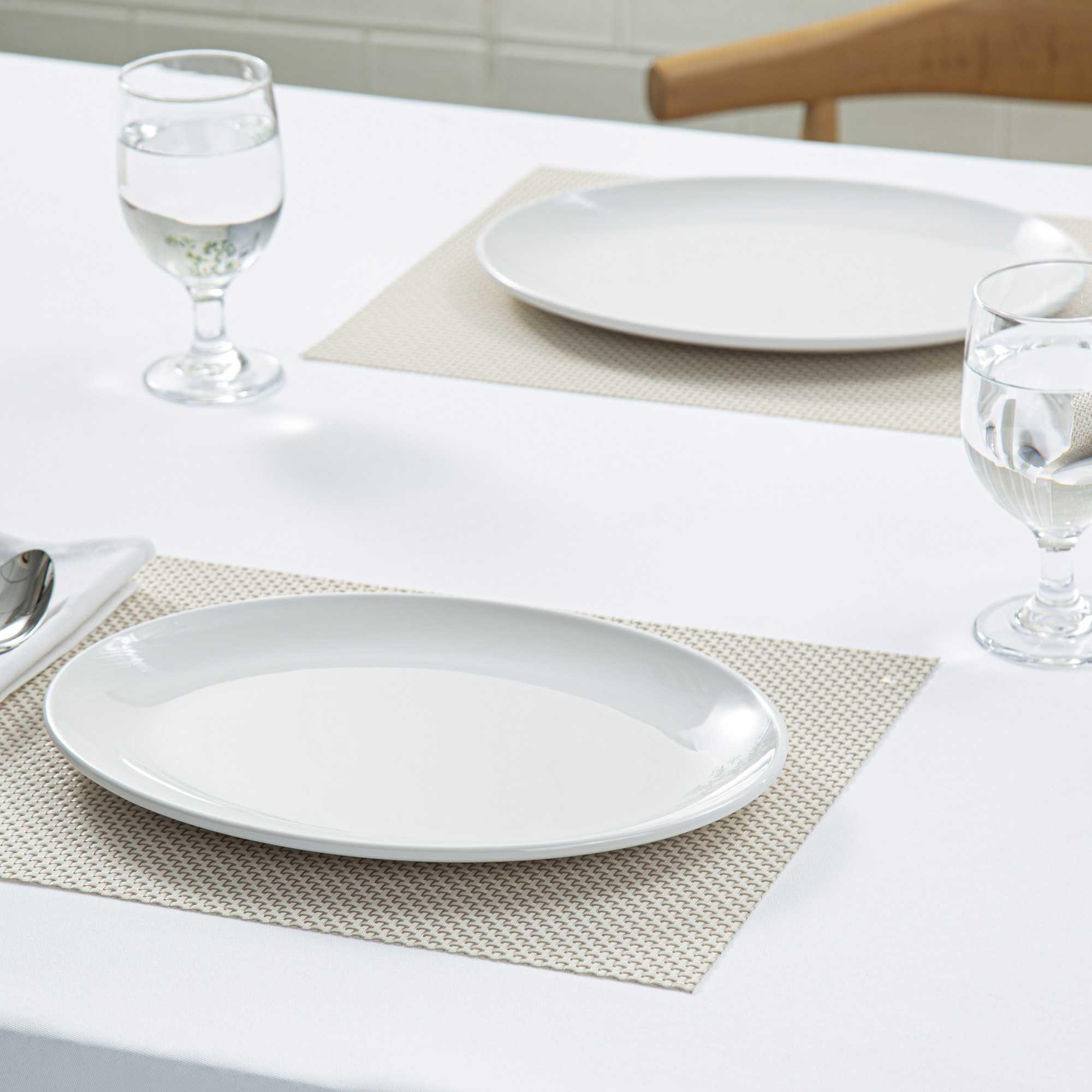 Elevate your entrees with our Voga Oval White Melamine Medium Plates. These pasta plates are crafted from premium melamine for heavy-duty durability, ideal for long-lasting use at your foodservice establishment. The contemporary oval shape of these serving plates are perfect for stylishly display fresh avocado chicken salad at your cafe, or to elegantly serve tasty grilled salmon at your catered event. Featuring a white finish, these dinner plates add a modern touch to your tablescapes. To streamline your after-service cleanup process, these oval plates can be used in the top rack of a dishwasher. These white plates measure 12.25 inches in length by 9 inches in width by 1 inch in height. Shipped in a 10 count box.