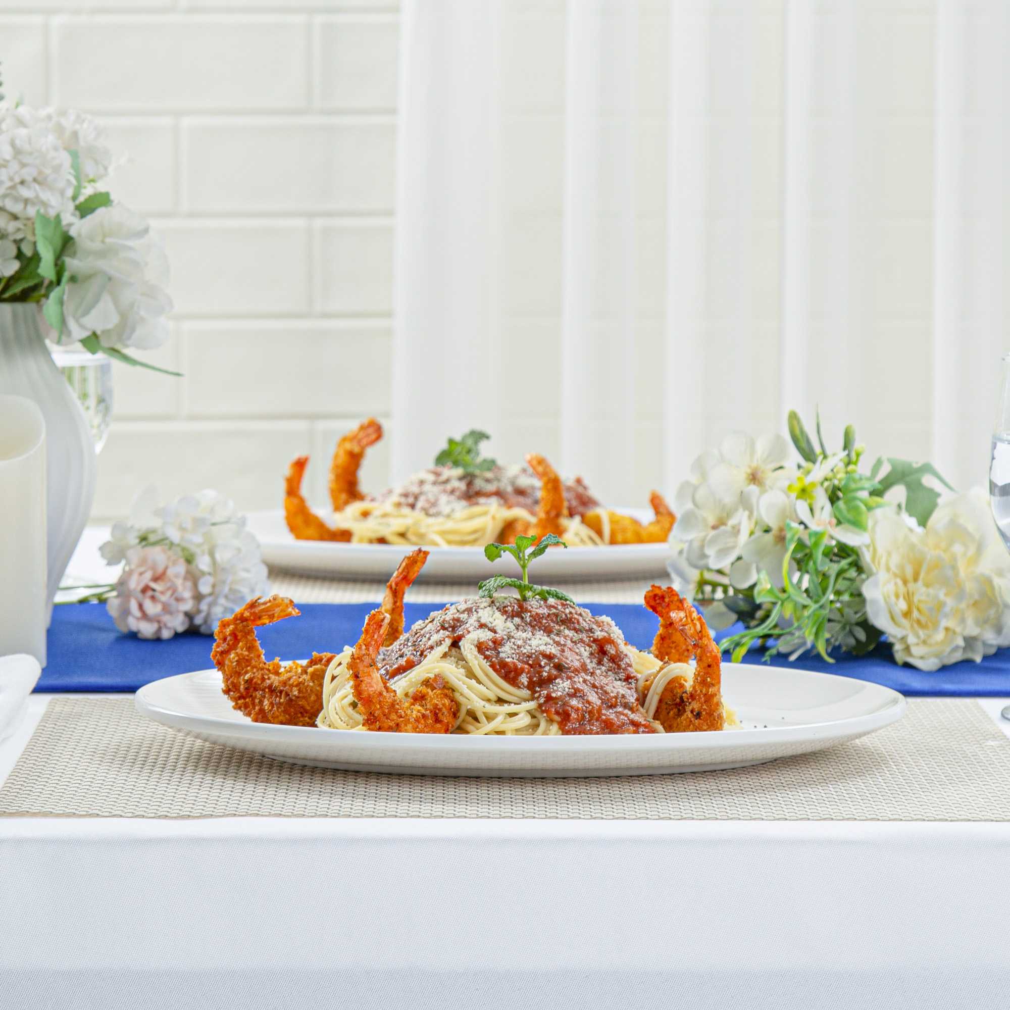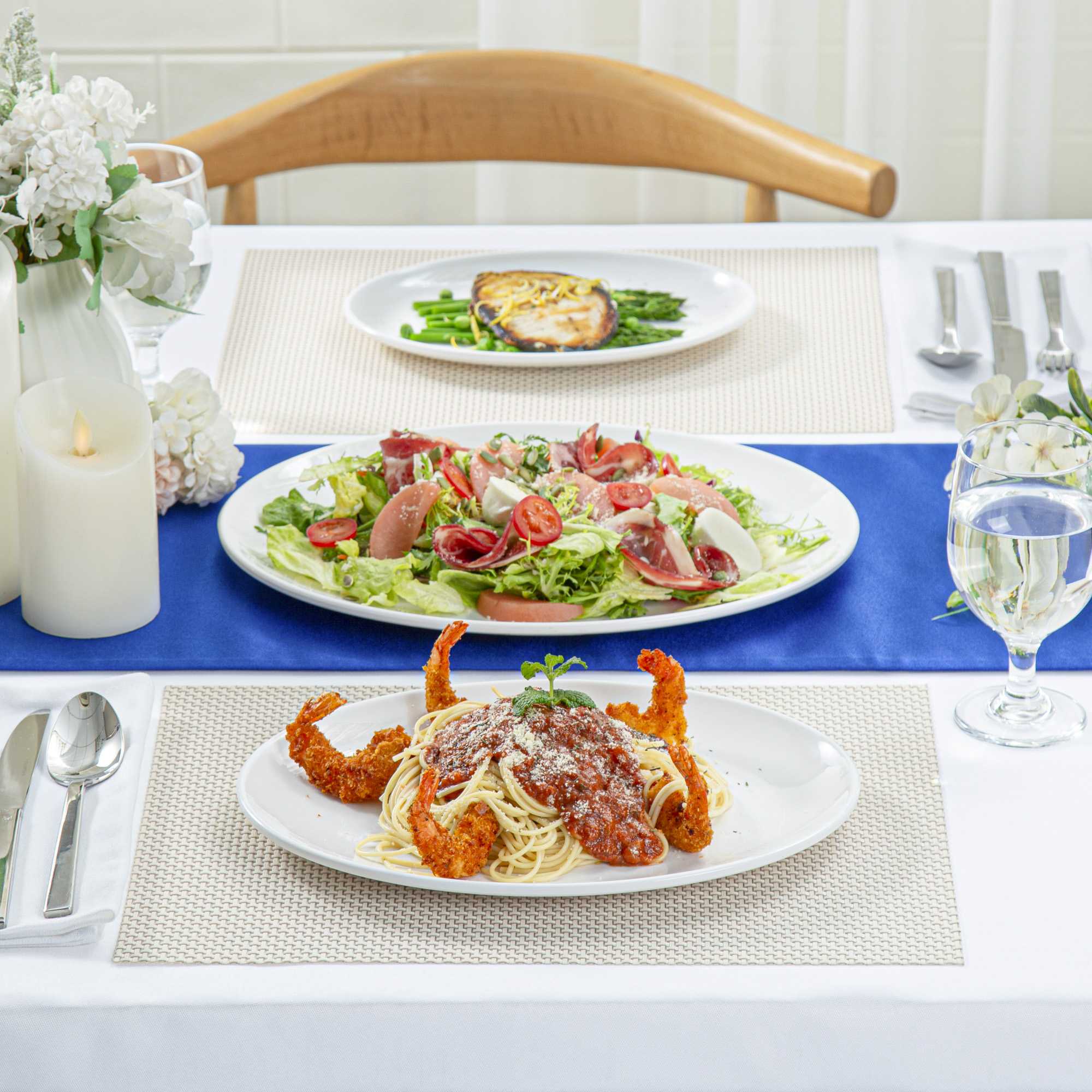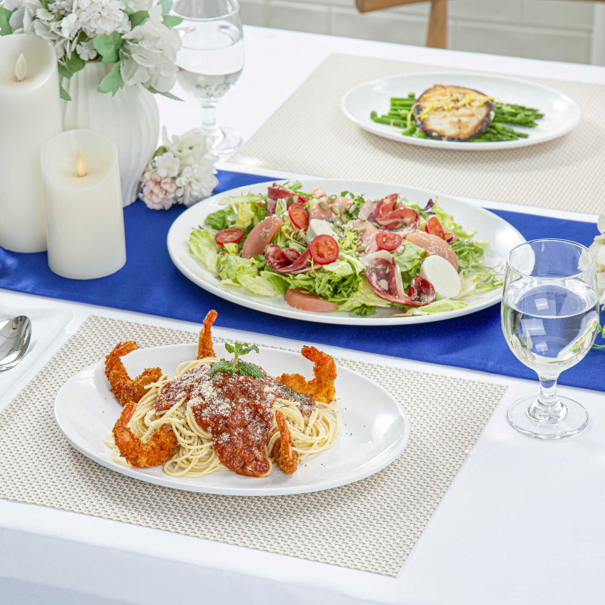 - Glossy white finish effortlessly enhances the food's vibrant colors