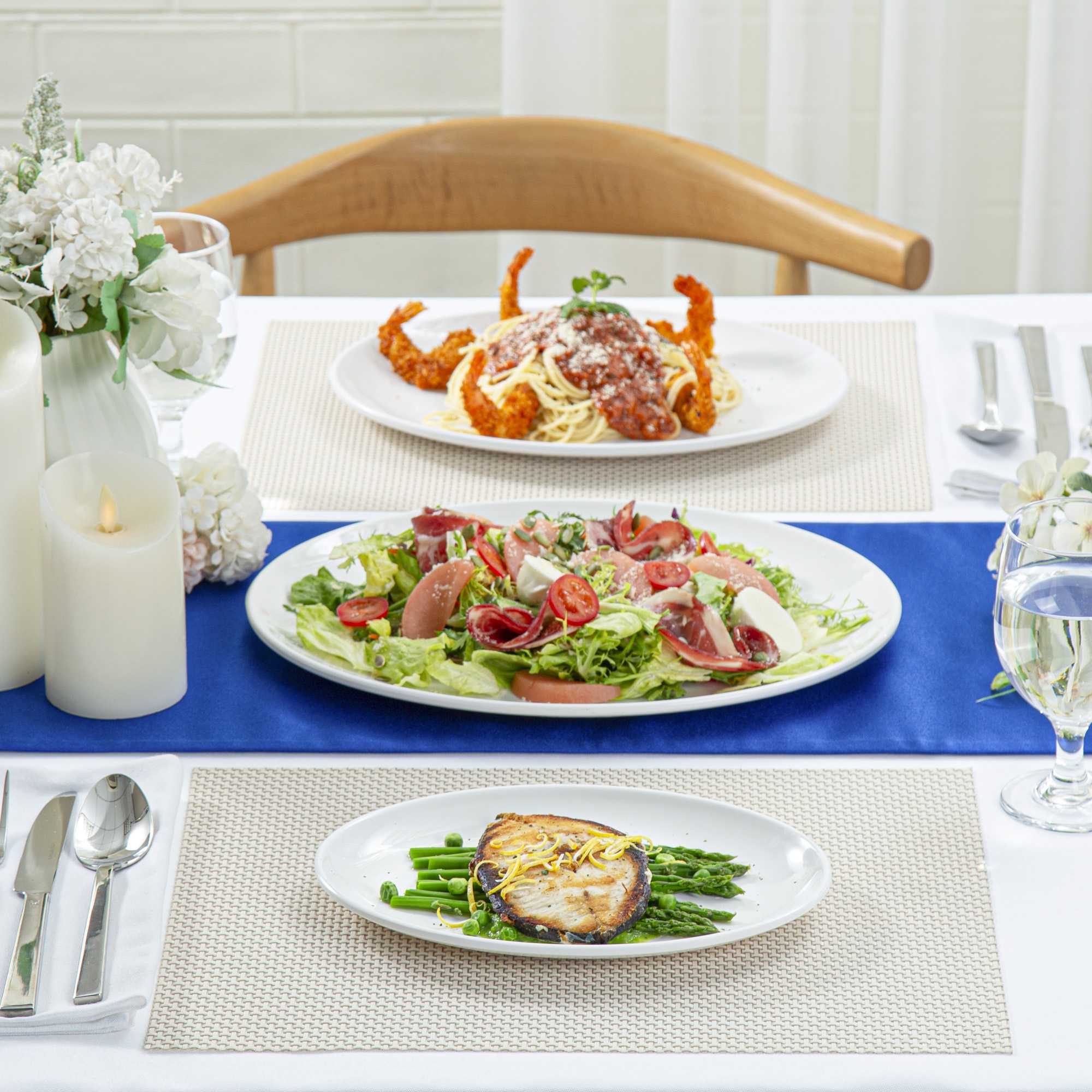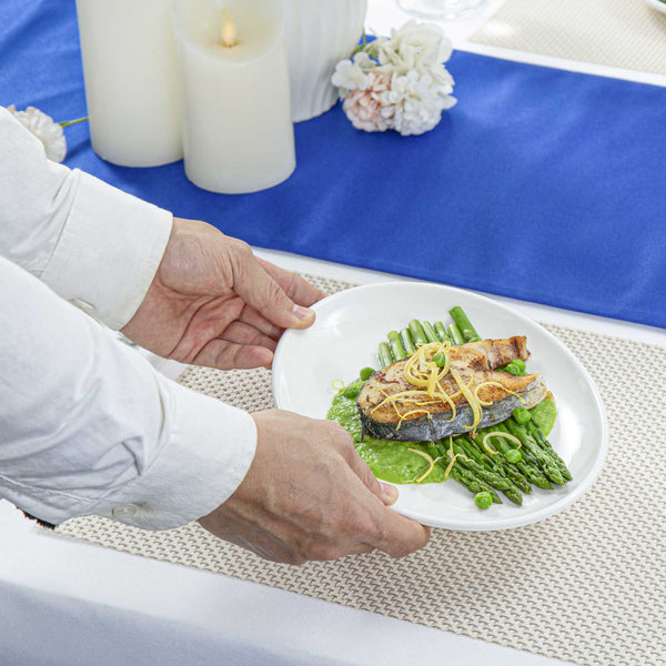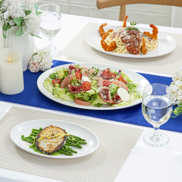 - Glossy white finish effortlessly enhances the food's vibrant colors