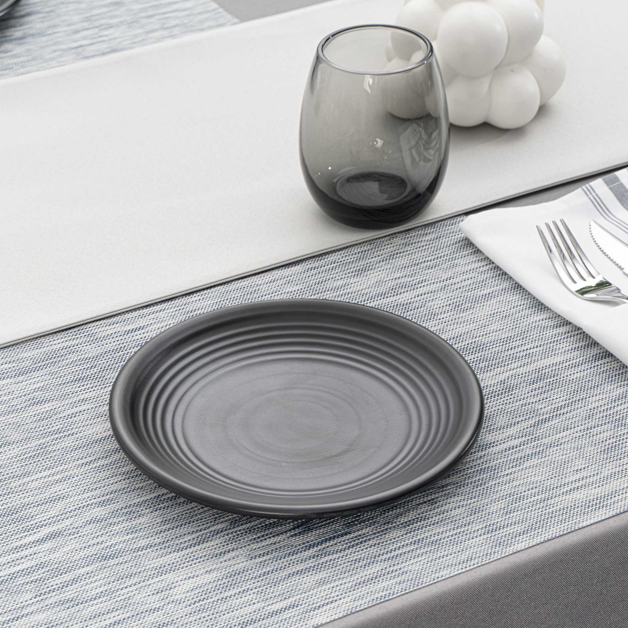 ROUND BLACK MELAMINE SMALL PLATE - JAPONAIS, BLACK STONE