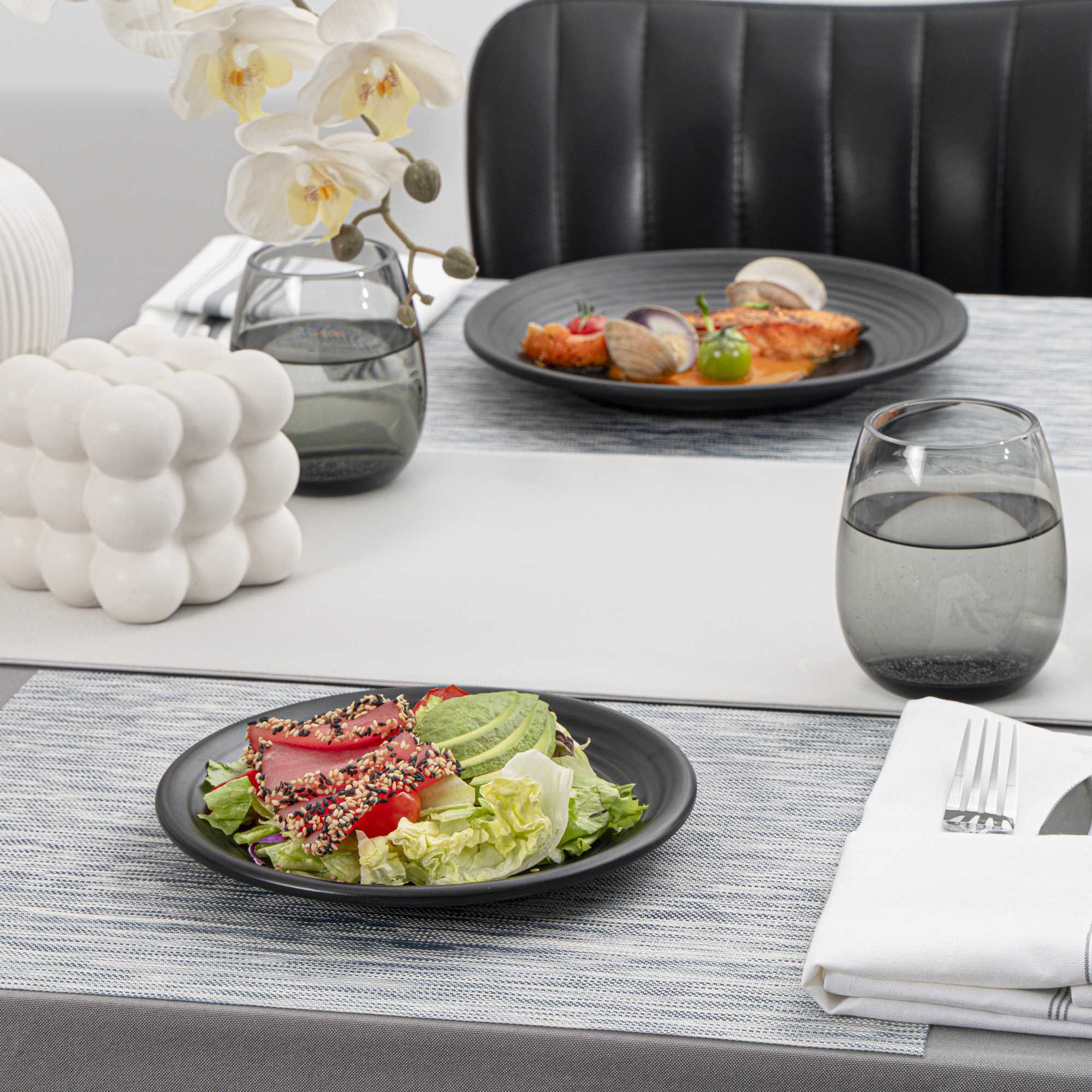 - Matte black finish effortlessly enhances the food's vibrant colors