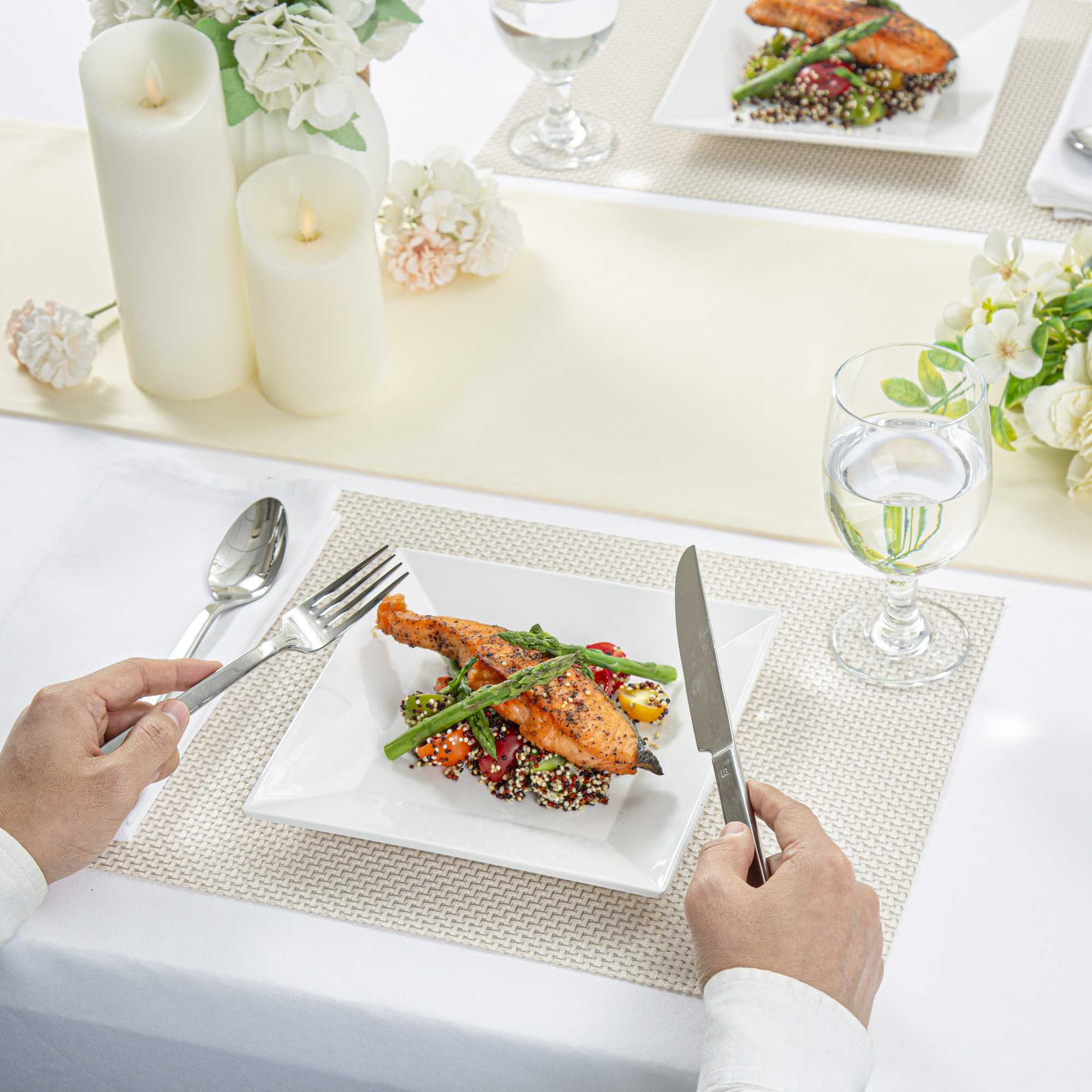 - Sleek square shape enhances table settings with a contemporary and stylish design