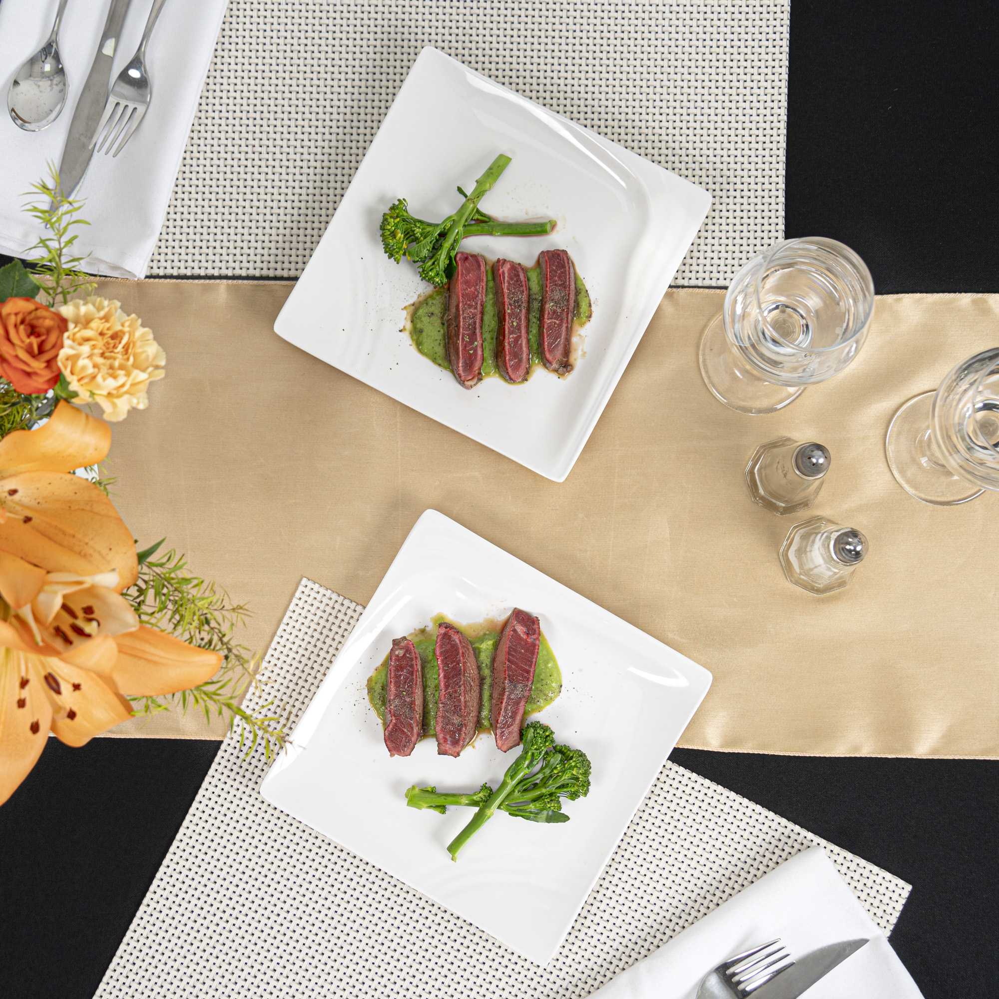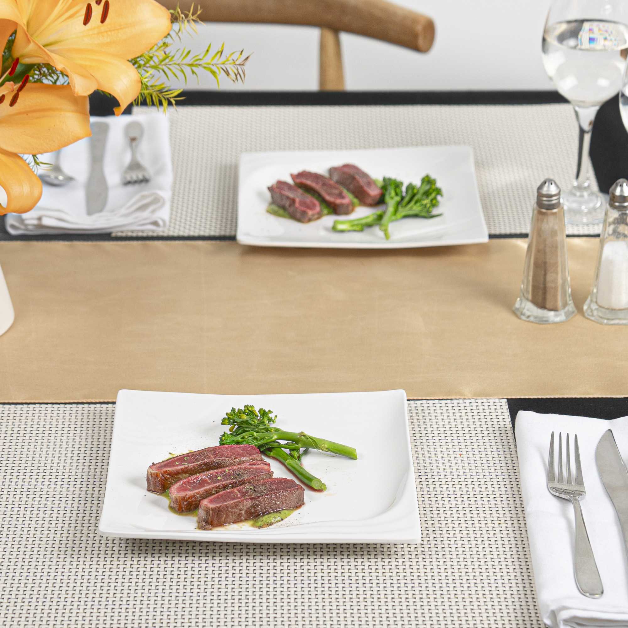 - Glossy white finish effortlessly enhances the food's vibrant colors