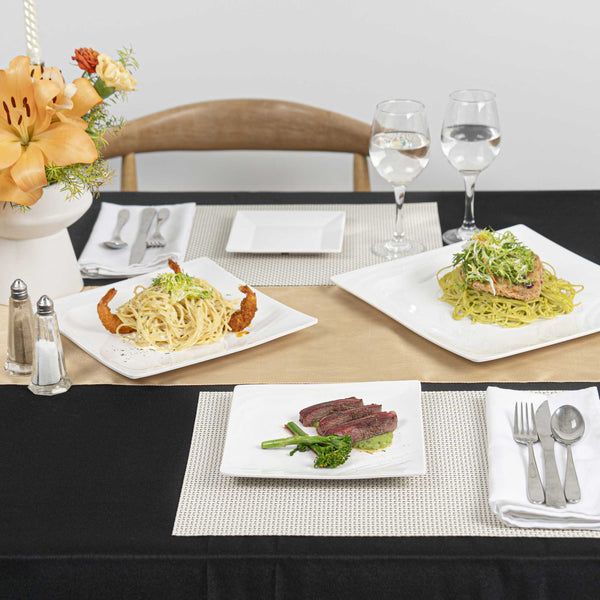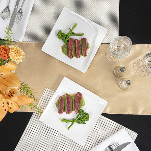 Bring a modern touch to delicious dishes with our Voga Square White Melamine Small Plate. These appetizer plates are crafted from high-quality melamine for long-lasting durability, ideal for serving various hot or cold food items at your parties. The contemporary square shape of these sushi plates creates a stylish look for your food presentation. Featuring a glossy white finish, these square plates add style to your restaurant, bistro or catered event. For an easy cleanup, these serving plates can be used in the top rack of a dishwasher. These white plates measure 8 inches in length by 8 inches in width. Shipped in a 10 count box.