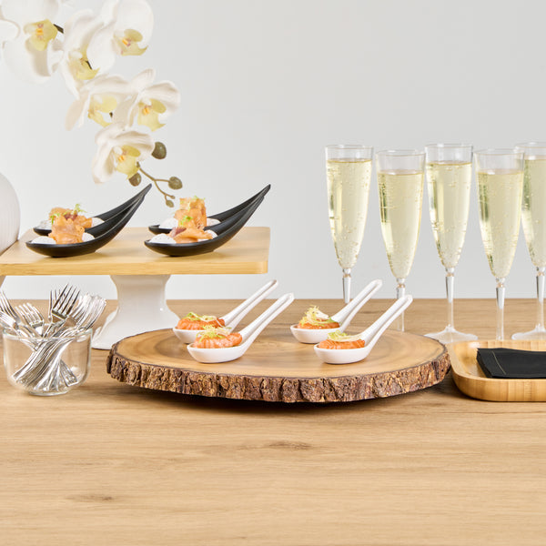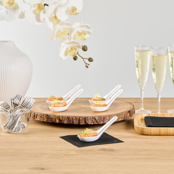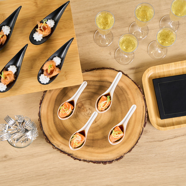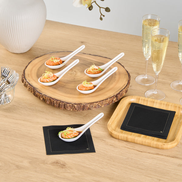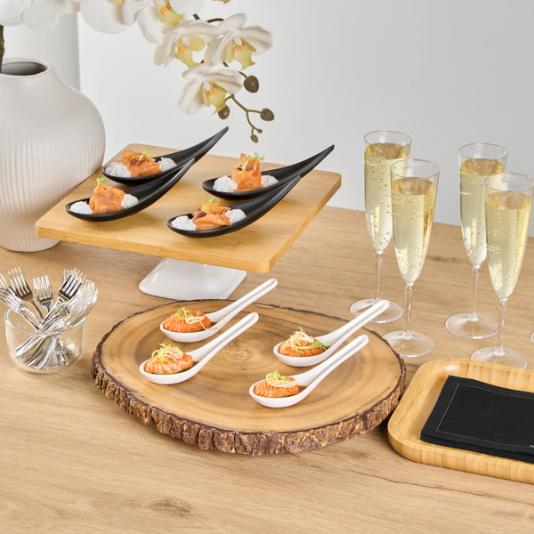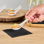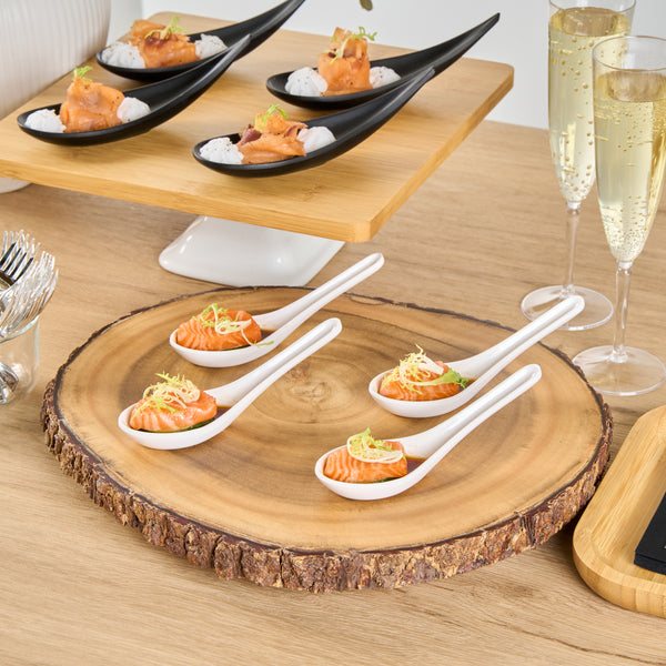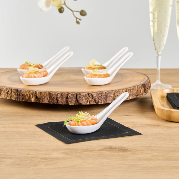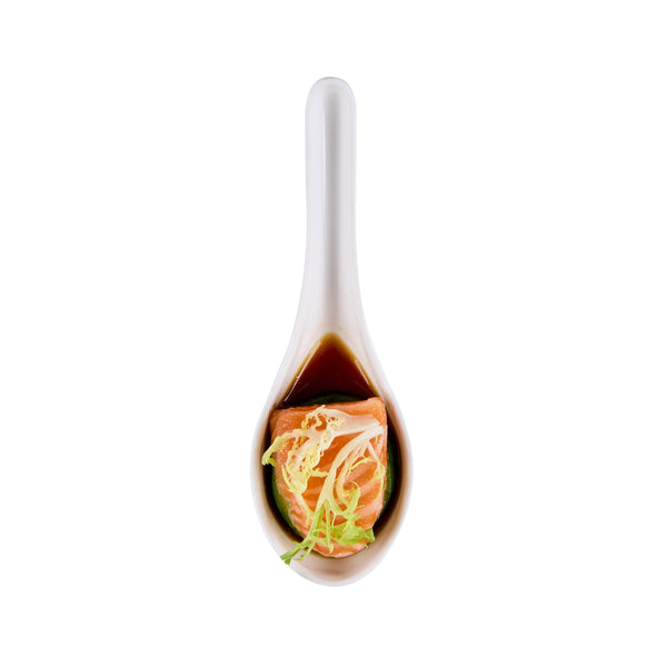 Present bite-sized fares with our Voga White Melamine Asian Soup Spoons. Crafted from high-quality melamine, these Asian spoons are durable and ideal for serving various hot or cold food items. Featuring a flat, wide bowl, these Chinese spoons are great for scooping up big bites of broth, noodles, sauce, and other soupy delicacies. These Japanese soup spoons have a broad base that is designed to rest flatly on tabletops or serving platters. The ergonomic handle of these white spoons remains elevated for quick and mess-free service. These soup spoons have an elegant white finish that goes well all types of serving ware and tablescapes. For a quick cleanup, these melamine spoons can be used in the top rack of a dishwasher. These Asian soup spoons measures 4.75 inches long by 1.5 inches wide by 1.5 inches tall. Sold in a 10 count box.