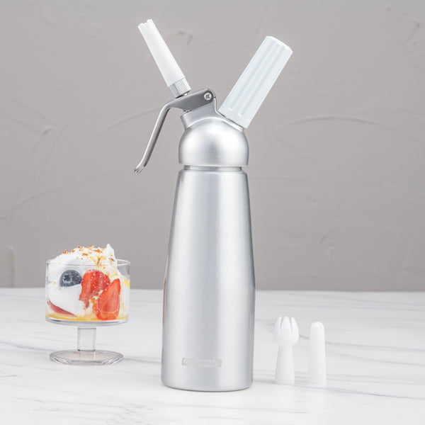 0.5L ALUMINUM WHIPPED CREAM DISPENSER - WITH 3 PLASTIC DECORATOR TIPS