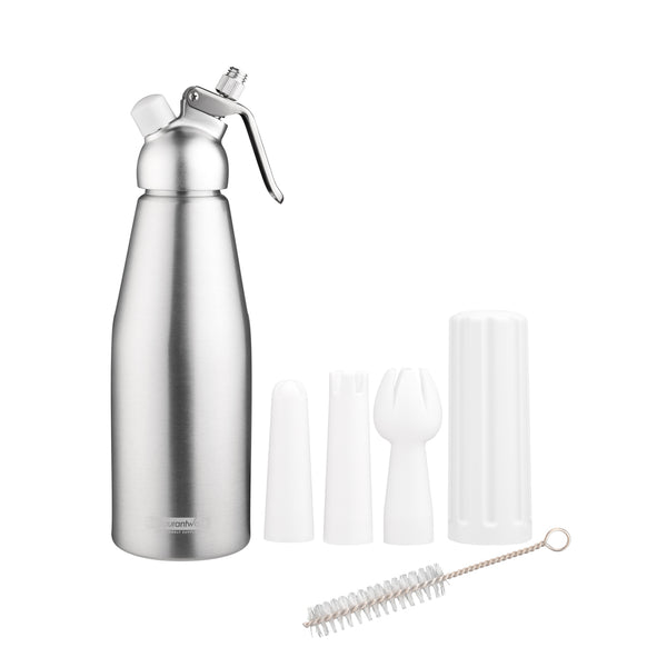 1L ALUMINUM WHIPPED CREAM DISPENSER - WITH 3 PLASTIC DECORATOR TIPS