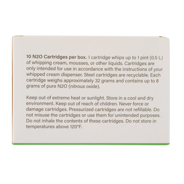 - 8 Gram N2O cartridge produces up to 1 pint of whipped creams or luscious foams in no time