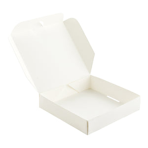 Impress your customers with our Bio Tek White Paper Mini Pizza Boxes. Made of premium paper, these pizza boxes have a durable construction to carry snacks and appetizers. The flap-top lid of these disposable small pizza boxes securely contains miniature pizzas and pastries for easy transport. These pizza packaging boxes have a white finish that adds a chic touch to any catered event. For a hassle-free cleanup, these pizza delivery boxes are disposable. Each white paper pizza box measures 3.5 inches in length by 3.5 inches in width by 0.75 inches in height. Sold in a 100 count box.