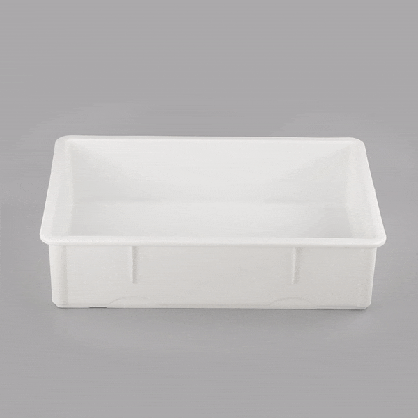 Allow your dough to ferment in our Eco Pie Rectangle White Plastic Pizza Dough Proofing Box. Featuring a reinforced rim, this dough tray provides a secure grip for easily transporting dough. Designed with a recessed bottom, this dough proofing box can be conveniently stacked to create more space in your storage area. Crafted from heavy-duty plastic, this dough ball tray is dishwashable to shorten your cleaning process. With a construction, this dough box can contain and store a variety of ingredients. Match this pizza dough proofing container with our Eco Pie coordinating lid to control the temperature and humidity inside the boxes. This pizza proofing pan measures 26 inches long by 18 inches wide by 6 inches tall. Sold in a 1 count box. Lid (SKU: RWT0865-1) is available and sold separately.