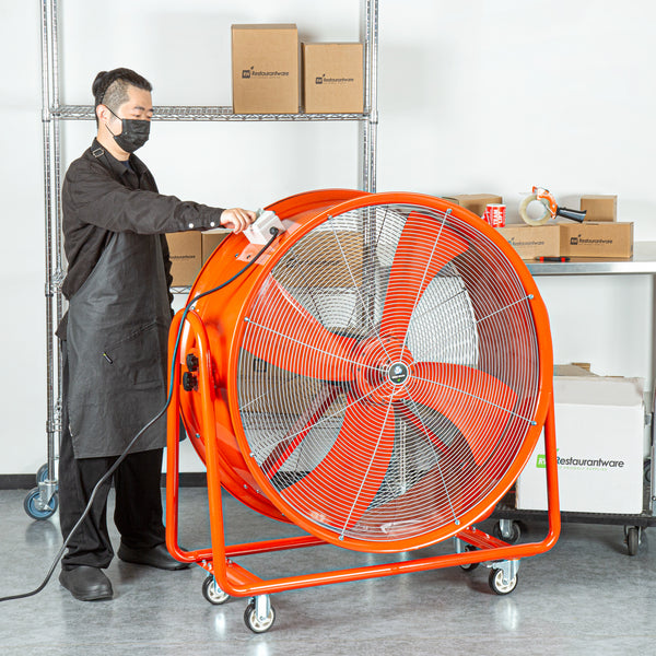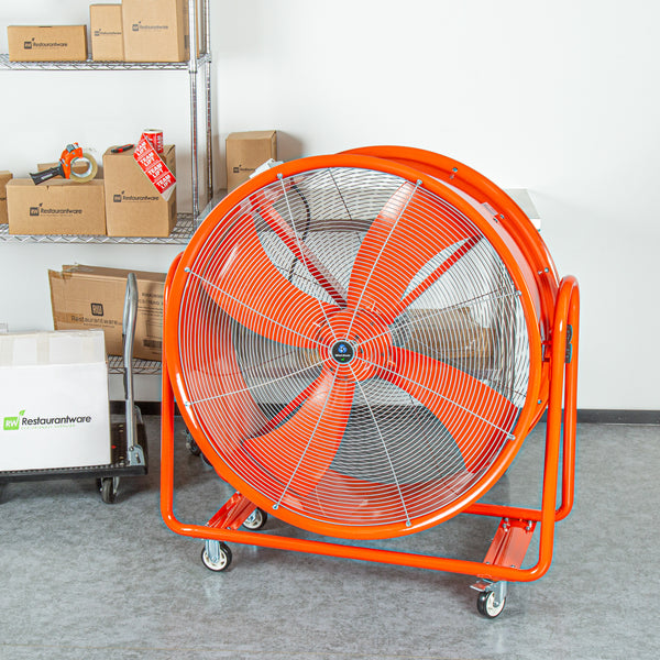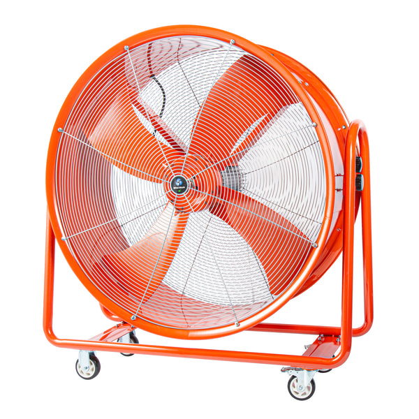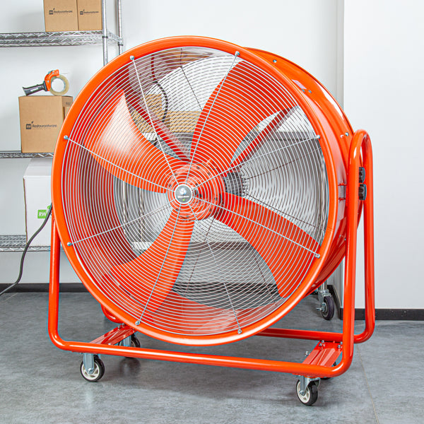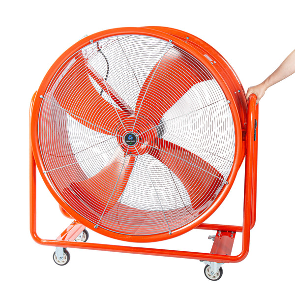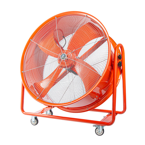 Keep your work area fresh and clear with our Wind Blade Red Portable High Velocity Ventilator Drum Fan. Boasting a powerful 1 1/2 HP motor and generating an impressive 15,357 CFM, this jobsite fan delivers robust airflow to swiftly clear out smoke, gases, odors, hot air, and dust, making it essential for situations where rapid air expulsion is crucial. This extractor fan functions effectively as a fume extractor in workplaces such as factories and manufacturing plants, where it helps remove accumulated fumes. Featuring 4 wheels, this industrial fan offers unmatched portability, allowing you to easily maneuver it across any surface and adjust its position in dynamic workspaces like warehouses and construction sites. The 360-degree tilt head of this utility fan provides flexible airflow direction, enabling precise targeting of specific areas without the need to move the entire fan. Constructed from heavy-duty steel, this construction site fan is built to endure tough conditions and provide long-lasting performance, making it suitable for both indoor and outdoor spaces. Operating with low noise levels, this warehouse fan meets noise regulations, facilitates clear communication among workers, and reduces the risk of hearing damage. The vibrant red color of this ventilator fan ensures high visibility in busy work areas, helping to avoid accidents and tripping hazards in cluttered conditions. Measuring 42 inches in diameter, this drum fan offers extensive coverage and powerful ventilation to address large-scale airflow requirements efficiently. Sold in a 1 count box.