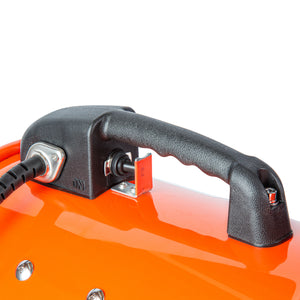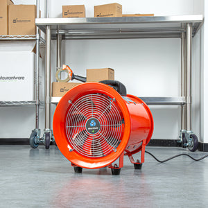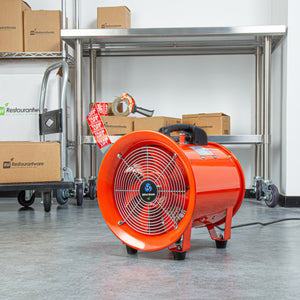 Ensure employees stay cool during working hours with our Wind Blade Round Red Steel Portable High Velocity Ventilator Fan. Equipped with a powerful 1/2 HP motor and delivering 1,960 CFM, this jobsite fan generates intense airflow to swiftly remove smoke, gases, odors, hot air, and dust. Serving as an effective fume extractor, this utility blower fan is ideal for workplaces like factories and manufacturing plants where fumes and particles need to be controlled to ensure secure and clean conditions for workers. Designed with portability in mind, this fan features a built-in handle for easy transport, making it a versatile choice for temporary workspaces such as event venues, warehouses, and construction sites. This warehouse fan is also compatible with our PVC ventilation duct hose (SKU: RWT1898T), allowing you to ventilate challenging areas like crawlspaces and tunnels. Made from heavy-duty steel, this fan promises long-lasting durability and reliable performance in demanding circumstances. Operating with low noise, this extractor fan meets noise regulations and facilitates clear communication among employees. Finished in a vibrant red, this high-velocity fan stands out to enhance visibility and avoid accidents in cluttered spaces. With a diameter of 10 inches and overall dimensions of 13.97 inches long by 13.38 inches wide and 16.73 inches tall, this ventilator fan is engineered to be compact. Sold in a 1 count box.