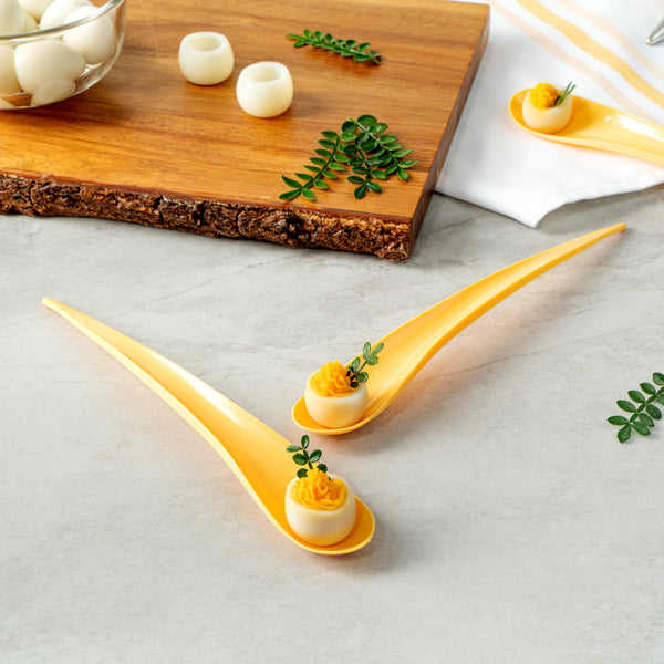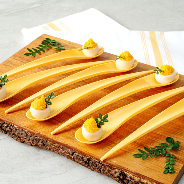 These appetizer spoons have a multi-purpose design, making them excellent for serving samplers at your foodservice establishment or displaying sweets on dessert tables. Great for birthday parties, buffets, and more!