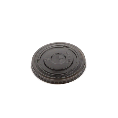 ROUND BLACK PLA PLASTIC FLAT LID - FITS 12, 16, AND 24 OZ