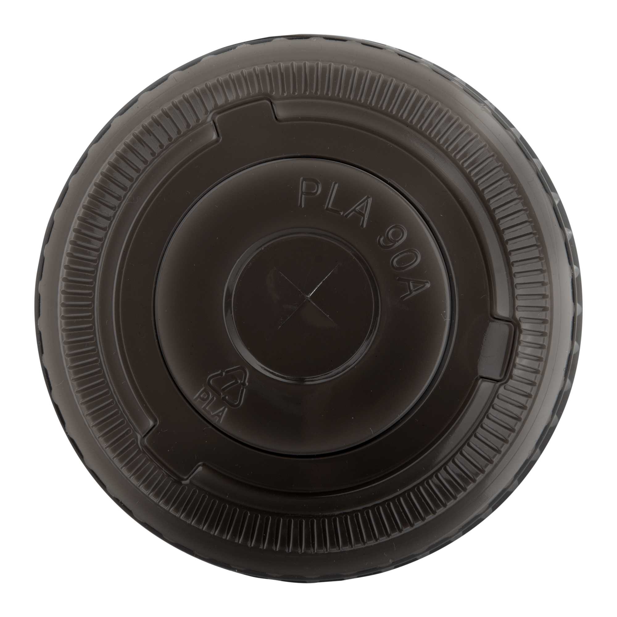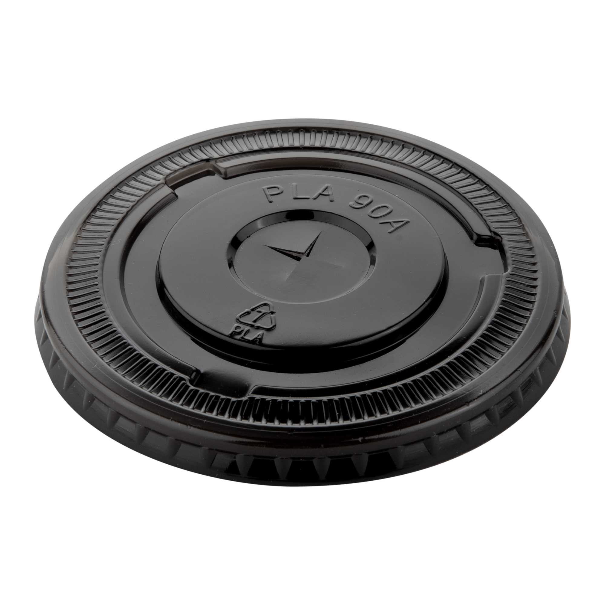 ROUND BLACK PLA PLASTIC FLAT LID - FITS 12, 16, AND 24 OZ