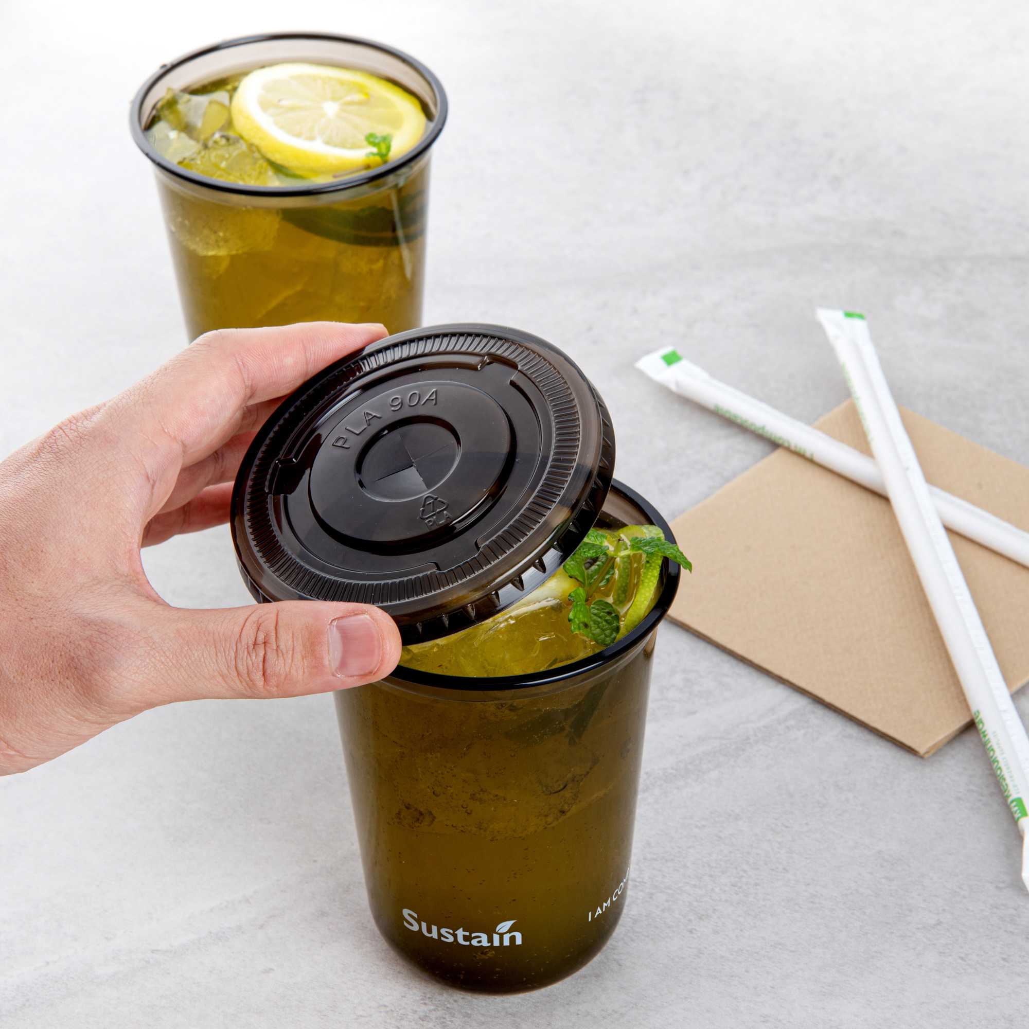 - Commercially compostable PLA plastic offers a sustainable alternative to traditional lids